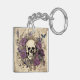 Vintage Schädel- und Purpurblumen Schlüsselanhänger