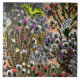 Eine schöne Darstellung von Flora und Fauna mit altem Weltcharme. Verschiedene Pflanze, bei denen Schmetterlinge herumschmettern. In warmen und reichen Farben gefertigt.