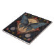 Vintager, Viktorianischer Blauer Schmetterling auf dunklem gemustertem Hintergrund mit goldenen Sonnenburstakzenten.