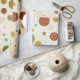 Hübsches Urlaubspapier oder Winterverpackungspapier mit Vintagem, weißem Hintergrund mit Polka-Punkten in verschiedenen Größen in Rot, Oliven, Weiß, Gold und aquamarin mit Schneeflocken verstreut!