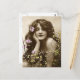 Vintages Farbfoto einer wunderschönen, langhaarigen Frau mit Blume im Haar.