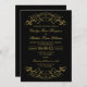 Dekorative Wirbel und Schnörkel umrahmen dieses Vintage, inspirierte Hochzeitsdesign. Schwarz und Gold Farbschema. Personalisieren Sie den benutzerdefinierten Text für Ihre Ehezeremonie und Ihren Empfang.