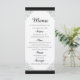 Schwarz, Weiß und Grau, schlicht aber elegant und raffiniert Vintage Blumenmenüs verziert Hochzeitsmenüs. Persönlich gestalten Sie diese klassischen Hochzeitsmenüs mit Ihren eigenen, spezifischen Speisen und Getränken.