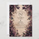 Machen Sie eine kühne und unvergessliche Aussage mit diesem dunkelromantischen Lila Blumendesign. Reiche, stimmungsvolle Blüten in tiefen violetten und schwarzen Tönen umrahmen einen Pergament-Hintergrund und schaffen einen eleganten und dramatischen Stil, der perfekt für eine anspruchsvolle, gotisch inspiriert Hochzeitsfeier geeignet ist.