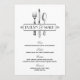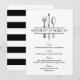 Die Vintagen inspirierten Dinner-Menükarten zeichnen sich durch eine Art Deko-Stil-Monogramm-Rahmen-Gestaltung der Braut- und Bräutigamen aus, die mit dekorativen Silberwaren (Gabel, Messer, Löffel), einem klassischen Schwarz-Weiß-Farbschema und fett schwarz-weiße Streifen auf der Rückseite der Karte ausgestattet ist.