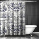 Eleganter Vintager Schwarzer Doppel-Doppel-Monogramm Duschvorhang. Schönes nahtloses Toile de jouy Muster Blau auf weißem Hintergrund. Die Toilabdrücke sind ein Alltagswut, ein elegantes und verziertes Vintages Jouy mit exotischen Damast-Mustern, einem lustigen Stil, der derzeit für Wohngestaltung, Kleidung, Handy und IPad Hüllen, Einladungen und vieles mehr anzieht. Das Design ist klassisch und zeitlos mit atemberaubender Farbe. Sie können alle Textfarben und Schriftart ändern, klicken Sie, um weiter unter dem Bereich der Textanpassung, der Sie in das Design-Tool führt, anzupassen. Ein einzigartiges Geschenk für Geburtstag, Urlaub und jeden besondere Anlass. Ob zum Valentinstag, zu Weihnachten oder als Geschenk im Allgemeinen - es ist eine tolle Geschenkidee