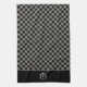 Vintager, beige und schwarzer Botanischer Monogramm-Rahmen, kariertes Küchenhandtuch.