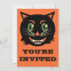 Eine neue Spin auf unsere Retro-inspirierte, grinsende schwarze Katze, mit neuen Farben, die durch klassische Halloween-Dekorationen aus den 30er Jahren mit abgenutztem Vintagem Look inspiriert wurden. Passen Sie den Rücken mit den Details Ihres Events an!