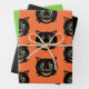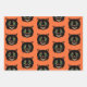 Eine neue Drehung um unsere Retro-inspirierte, grinsende schwarze Katze, neu mit neuen Farben, inspiriert durch klassische Halloween-Dekorationen aus den 30er Jahren. Ein Zeichendruck, ein Schwarz und ein schwarz-weißes grünes Blatt.