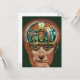 Vintage Illustration futuristische Science Fiction Außerirdischen und Roboter Bild mit einem Mann, dessen Gehirn exponiert zeigt ein Labor. Ein klassisches Comic-Buch-Design mit einem Cyborg-Wissenschaftler mit seiner Hand in sein Kinn mit einem intensiven Blick auf sein Gesicht und sieht aus, als ob er an die Zukunft denkt oder vielleicht gerade in Gedanken verloren.