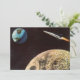 Vintage Illustration futuristische Reise-und Transport-Science Fiction Weltraum-Bild. Ein 50er Retro-Sci-Fi-Comic Buch-Stil-Design mit einem Rocketschiff, das über den Mond fliegt und in der Zukunft wieder auf den Planeten Erde zusteuert.