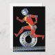 Vintage Illustration Science Fiction Business Design mit einer glücklichen, lächelnden Roboter Figur aus Maschinenteilen. Die futuristische Frau oder der Mann hat ein Lächeln und läuft mit einem Getriebe, Zahnrad oder Rad auf einem Förderband. Ein gesunder Sci fi Typ oder Gal Joggen für Gesundheit, Rennen in die Zukunft!