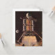 Vintage Illustration futuristische Reise-und Transport-Science Fiction Bild aus der Zukunft. Ein klassisches 50er Retro-Comic-Buch-Design mit einem Rocketschiff, das von einem fremden Planeten in einen dunklen Nachthimmel mit dem Mond und den Sternen in der Ferne strahlt.