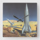 Vintage Science Fiction Wüstenplanet mit Raketen Quadratische Wanduhr
