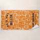 Vintage Sechzigerjahre retro Artentwurfs-Hochzeitsgeschenk-Badetücher. Kundenspezifisches beachtowel für gerade verheiratete Paare. Spaß-Geburtstagsgeschenkidee für Herrn und Frau, Braut und Bräutigam, Honeymooners, neuer Ehemann und Ehefrau, Jungvermählten etc. Sommerbestimmungsortzusätze für Strand und Pool. Kundengerechte orange Hintergrundfarbe mit gerundetem Quadratmuster.
