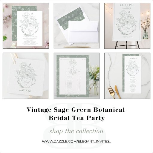 Vintage Sage Green Botanical Bridal Tea PartyDesignt von ANASTASIA SURRIDGE, Creative Director