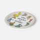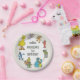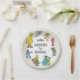 This delightful paper plate is perfect for serving treats at a little one's first birthday party with a classic Sesame Street theme! The design features a cheerful circle of beloved characters, including Big Bird, Zoe, Grover, Elmo, Oscar the Grouch, Cookie Monster, Bert, and Ernie. At the top, the iconic "123 SESAME STREET" sign is displayed. The center of the plate prominently features a customizable "My 1st BIRTHDAY" message in a playful yet classic font, which can be personalized with a child's name, making it a wonderful and nostalgic addition to any celebration.