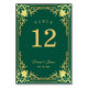tischnummervintagsmaraggrünimitatelegantantiquitätenrahmenverziertnamen von braut und bräutigamgoldene schriftkalligraphie