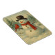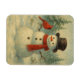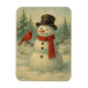 A charming, nostalgic Christmas scene with a snowman and red bird on a snowy Christmas day.