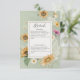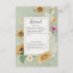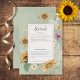 Dieses Hochzeitsdetails-Kartendesign zeichnet sich durch einen schönen Rahmen von weichen Aquarellfarben Sonnenblumen und anderen sommerlichen Blumen auf einem sanften, lichtdurchfluteten, schlängelgrünen Hintergrund aus. Es ist romantisch mit einer Touch von Vintag. Es wurde von der einfachen Bauernpresse erschaffen und ist Teil der Vintagen Summer Sunflower Floral Wedding Suite mit Karten.