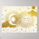 Leuchtgolden auf weißem Vintagem Himmelssonnen- & Monddesign feiert die Himmel oben zu jeder Jahreszeit inklusive Urlaub. Retro klassisches antikes Design. Vintage Himmelskunst mit goldener Sonne, Sonnenstrahlen, Halbmond, Sternen und Wolken. Antikes Design für Liebhaber kosmischer Traditionen.