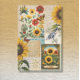 Vintage Vögel, Blume und Schmetterlinge, vermischt mit handgeschriebenen Briefen und Typografie, in den Sommerfarben Gelb, Rot, Blau, Grün und Beige Pergament. Die Handschrift ephemera des Skriptes wird sanft über das Crackle strukturierte Bild gelegt.