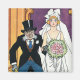 Vintage Illustration lustiges humorvolles Hochzeitsbild mit einem älteren Gentleman, der eine junge Frau in dieser Mai-Romanze heiratet. Eine alberne Liebe! Hochzeitlicher Spaß, LOL!