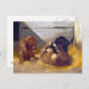 Auf dieser Postkarte finden Sie ein Vintages Bild von drei kleinen Welpen, die in einer Scheune spielen. Eine schöne Art, in Touch mit Familie, Freunden oder den Hundefreunden in Ihrem Leben behalten!
