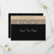 Dieses Vintage Spitzen Save the Date ist mit Altpapier und Spitzen auf schwarz gehalten. Ideal für Viktorianische Hochzeiten oder für Hochzeiten.