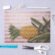 Ananas und Blätter auf einem Vintagen, rosa Streifen Hintergrund. Ideal für Deko- und Kunsthandwerksprojekte wie Möbelzubehör, Blumentöpfe, Untersetzer und vieles mehr! Auch ideal für Geschenkverpackungen.