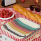 Karo diese Vintagen Streifen Teller aus und probiere sie auf deiner Babydusche/Geburtstagsfeier aus.