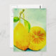 One and half Lemons. Traditional still life watercolor painting of bright yellow lemons done in a retro vintage style with a soft background.