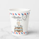 Vintage Suitcase Baby Shower Boy Adventure Postal Pappbecher