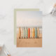 Stilvolle, weiche, Vintage Retro-Surfbretter, die im Sand am Strand stehend sind