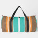 Ein farbenfroher Retro-Streifen-Design in Aqua-Blau und Orange auf einem Imitat Holzprint Hintergrund. Ein Vintages Surfbrettdesign mit einem Strand- und Surflook. Fügen Sie Ihren Namen hinzu, um diese persönliche Tasche zu machen, die sich unter Ihren Freunden herausstellen wird. Der Text ist ein Serifencode-Schriftart.