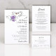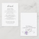 Celebrate your love story with this charming vintage-inspired enclosure card, featuring a sweet illustration of two swans forming a heart shape, adorned with delicate purple flowers. The header reads 'The Wedding of' followed by space for the couple's names. This card is ideal for conveying essential wedding details such as reception times, accommodation information, and website details. Its artistic watercolor style adds a romantic and personal touch to your wedding stationery, making it a memorable keepsake for your guests.