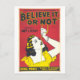 Diese Postkarte ist eine Reproduktion eines altmodischen Plakats, das Edna Price, einen Schwertschwörer, als Teil der von Ripley geförderten Truppe "Glaube es oder nicht" wirbt.