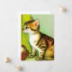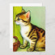 Karte mit einer bequemen Tabbattacke! Dieses hübsche Tabby Posen neben einem Korb und Blume. Ein perfektes Geschenk für Katzenliebhaber und Viktorianische Kunstliebhaber!