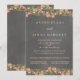 Vintage rustikale Hochzeitseinladung mit Kalkbrett und rosa Rosen.