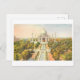 This is a vintage postcard that shows in the Taj Mahal in Agra, India.