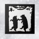 Dieses Vintage Märchenbild ist eine schwarze Silhouette von zwei Tanzbären im Wald. Eine Eule in den Bäumen schaut hinunter und beobachtet sie. Sehen Sie in meinem Shop Art by MAR nach, um Produkte mit diesem Design zu kombinieren.