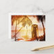 Roter öffentlicher Telefonstand auf Antigua mit einer Vintag gelb leuchtenden Foto Bearbeitung. Tropisch surreal mit Palmen und Sandstrand. info!