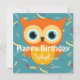 Adorable gelbe Eule blauen Muster Kindergeburtstag flache Karte.