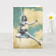Schönes Schwarz-Weiß-Vintage-Bild eines Trapezkünstlers, der ein Glas Rotwein auf einem Wolkenuntergrund hält. Multitasking!
