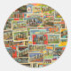 Diese Aufkleber sind mit einer farbenfrohen Collage von Reisekarten aus den Vereinigten Staaten aus aller Welt bestückt.