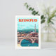 Diese Postkarte zeigt eine Reproduktion eines altmodischen Reiseplakats für den Kosovo.