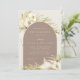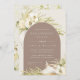 Die Einladungen der tropischen Chic-Party in einer verführerischen, neutralen Farbpalette sind mit einem zentralen Gewölbe versehen, das die Details Ihrer Verlobungsparty enthält. Die Farbpalette ist mit blass grünen Aquarellfronten, beachy Island Foliage, weißen Orchideen, boho getrockneten Botanicals und Pampas-Gras versehen.