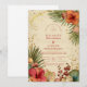 Celebrate your wedding day with timeless tropical elegance. This romantic design features lush hibiscus blooms, soft palm leaves, and painterly botanical details layered over a warm, vintage-inspired background. The refined typography and airy island palette create a sophisticated destination wedding feel that’s perfect for coastal venues, tropical resorts, or summer celebrations.