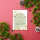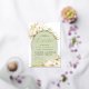 Tropisch-schicke Baby Widding Einladungen in einer verführerischen neutralen Farbpalette mit einer Rose goldenen Bogenbogen mit Ihrer Kirchenfeier und Feiern oder Party Details, mit hellgrünen Aquarellpalmen, Strand Insel Blätter, weiße Orchideen, boho getrocknete Botanicals und Pampas Gras.