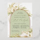 Tropical chic bat mitzvah invitations in an alluring neutral color palette feature a rose gold foil arch bearing your ceremony and celebration or party details, accented with pale green watercolor palm fronds, beachy island foliage, white orchids, boho dried botanicals and pampas grass.